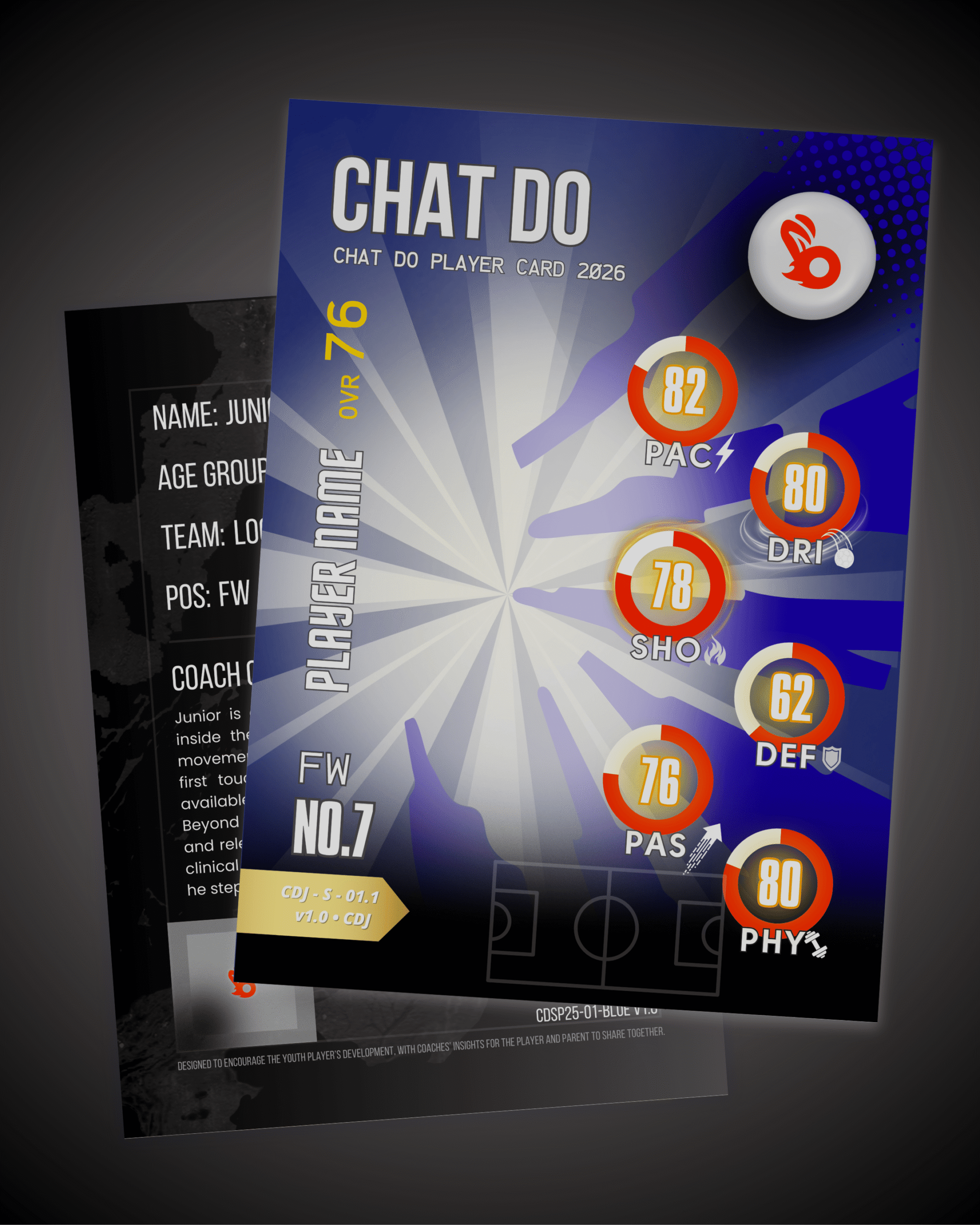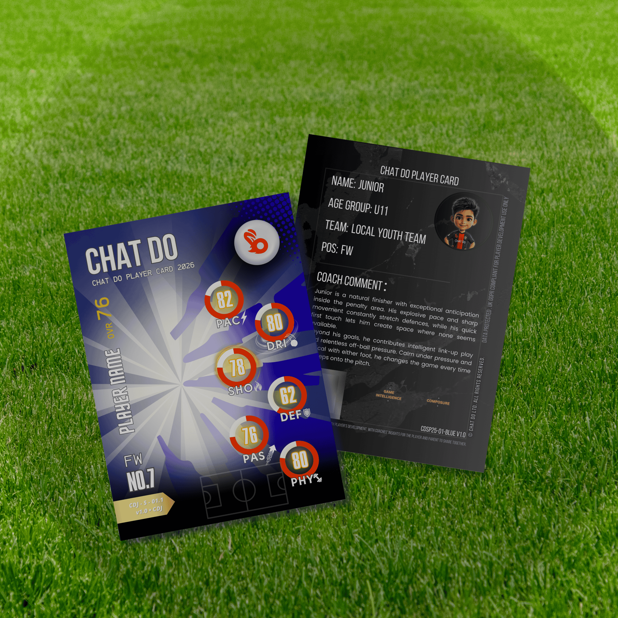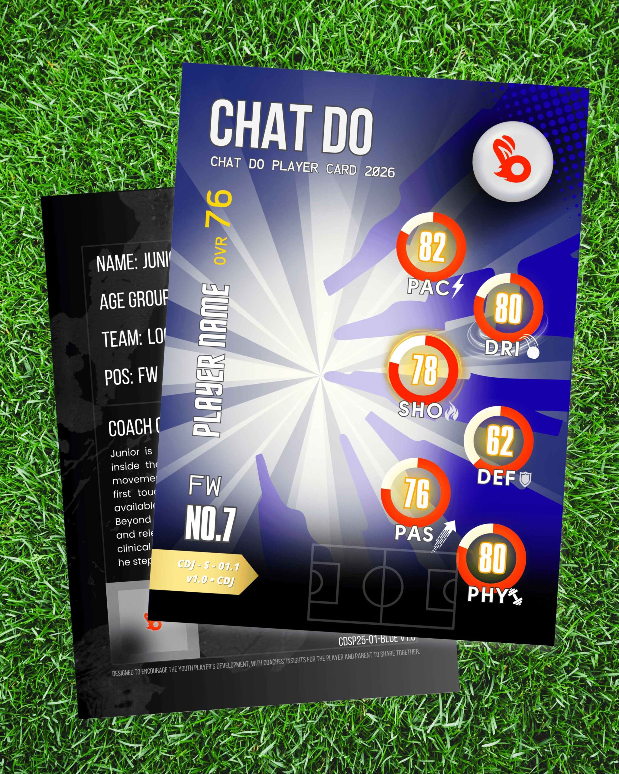 Chat Do® Player Cards are created only when a coach places a team order — ensuring every card reflects genuine ratings, real progress and meaningful recognition.